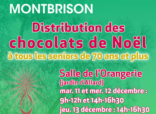 Comme chaque année, la magie de Noël s’invite à Montbrison !La Ville offre des chocolats de Noël à tous les Montbrisonnais de 70 ans et plus. Retrouvez les distributions près de… lire la suite >