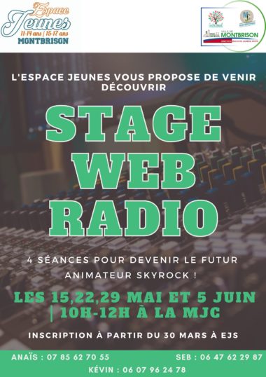 L’Espace Jeunes propose un stage Web Radio sur 4 séances en mai et juin.