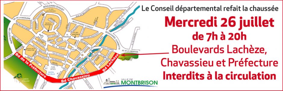 Le mercredi 26 juillet dès 7h, la circulation sera interdite sur les boulevards (Lachèze, Chavassieu et Préfecture) et des déviations seront mises en place pour se rendre en centre-ville. Dans la journée l’intégralité de l’enrobé des trois boulevards sera renouvelé. Le marquage au sol sera réalisé dans les semaines suivantes.