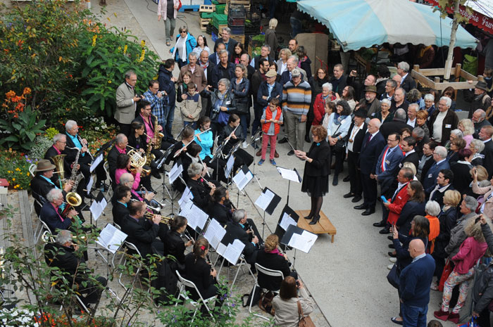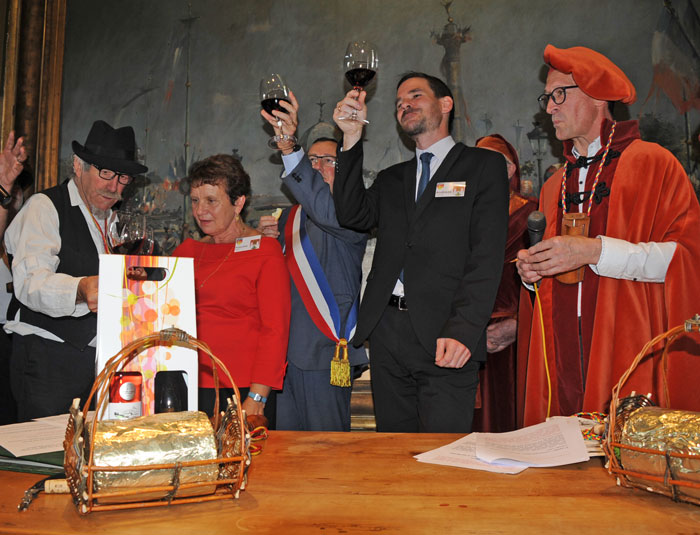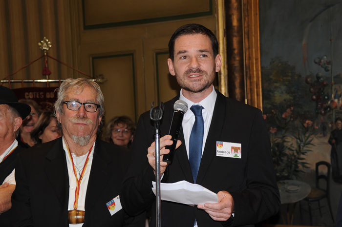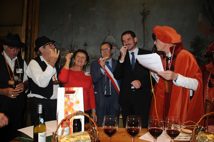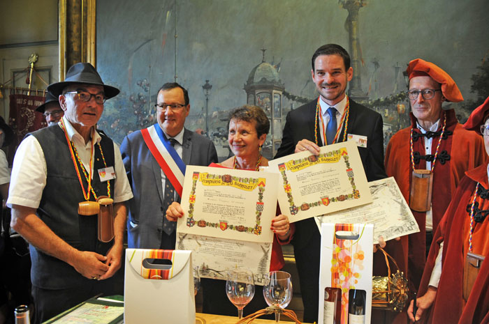 Et pour conclure cette cérémonie de jumelage, un moment symbolique avec l’intronisation dans la Compairie du Gai Barrelet et des Compagnons de la Fourme de Françoise Wimmer, Présidente de l’association des « amis de Montbrison », parrainée par Roger Chaperon (du Comité de Jumelage) et d’Andreas Steppberger parrainé par Christophe Bazile.
