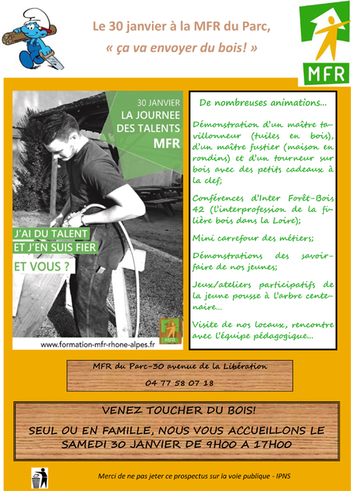 Samedi 30 janvier de 9h à 17h, la MFR du Parc organise sa journée des talents.
