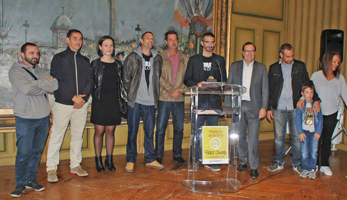 Moment d’émotion pour David, Jordan et Thomas, les trois mousquetaires de Forez Colors*, lorsqu’ils ont reçu des mains du maire, Christophe Bazile, la médaille de la ville de Montbrison.