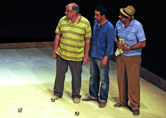 Quatre joueurs sont en scène dans cette partie de pétanque de tous les dangers : un rapatrié d’Algérie, un Français de l’immigration algérienne, un Provençal « de souche » et un Parisien fraîchement arrivé en Provence. Au fil du jeu, on apprendra peu à peu qu’ils ont tous une blessure secrète, un lien filial et intime avec la guerre d’Algérie. Ils s’opposeront, se ligueront, livreront leur vérité… ils auront cependant à coeur de finir cette partie, sur ce terrain qui les rassemble et les unit. Assis sur un banc, un musicien, simple observateur ou ange bienveillant, ses chansons seront des bouffées d’air frais pour que chacun reprenne son souffle.