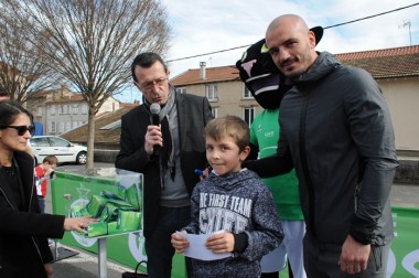 Jessy Moulin, gardien de but de l’AS Saint-Etienne, est allé à la rencontre des jeunes fans. Il a aussi animé les tirages au sort de cadeaux (maillots des verts et places de matchs à gagner) aux côtés Jean-Yves Bonnefoy (micro en mains), adjoint aux sports de la Ville de Montbrison et vice-président au sport du Conseil départemental.