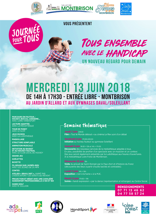 Samedi 9 juin 9h30-13h et 14h-17h30 : Découverte des nouveaux services de la médiathèque adaptée à tous. En plus, possibilité de profiter d’un spectacle avec un musicien et un conteur. Des jeux seront également présentés par la Ludothèque aux heures d’ouvertures. À la médiathèque Loire Forez de Montbrison.