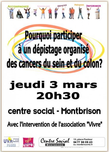 Centre social à 20h30, « Pourquoi participer à un dépistage organisé des cancers du sein et du colon ? »