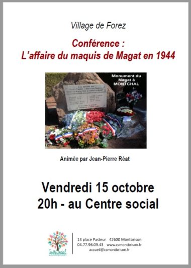 Village de Forez vous convie à la conférence animée par Jean-Pierre Réat sur l’affaire du maquis de Magat en 1944.