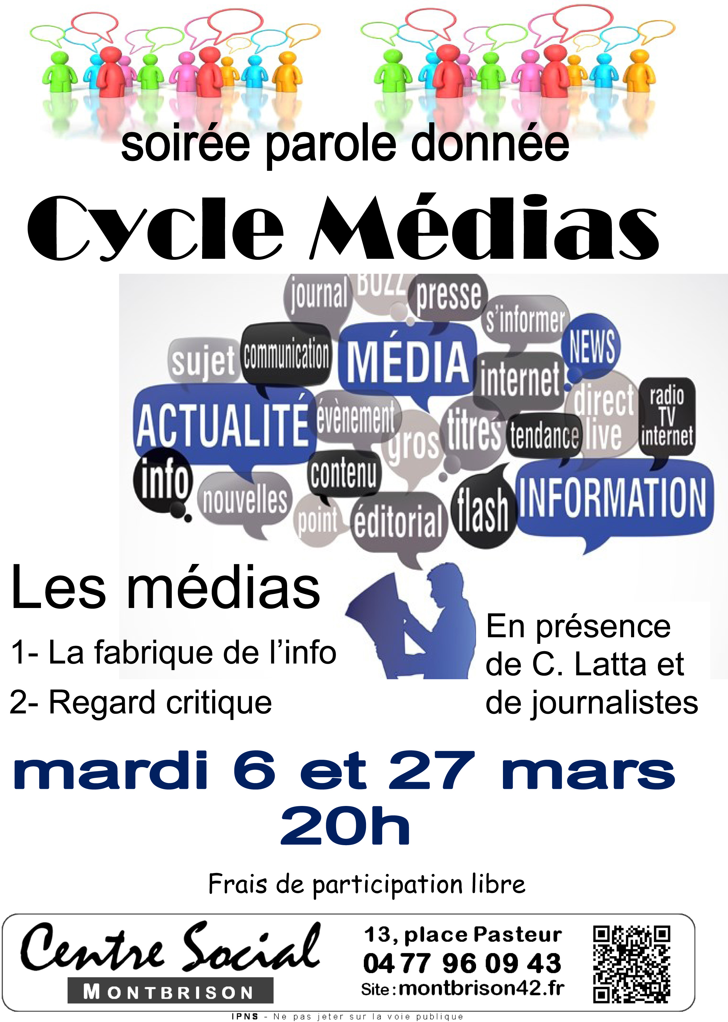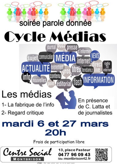 A 20h, au centre social de Montbrison, soirée Parole Donnée thème la fabrique de l’info et le regard Critique