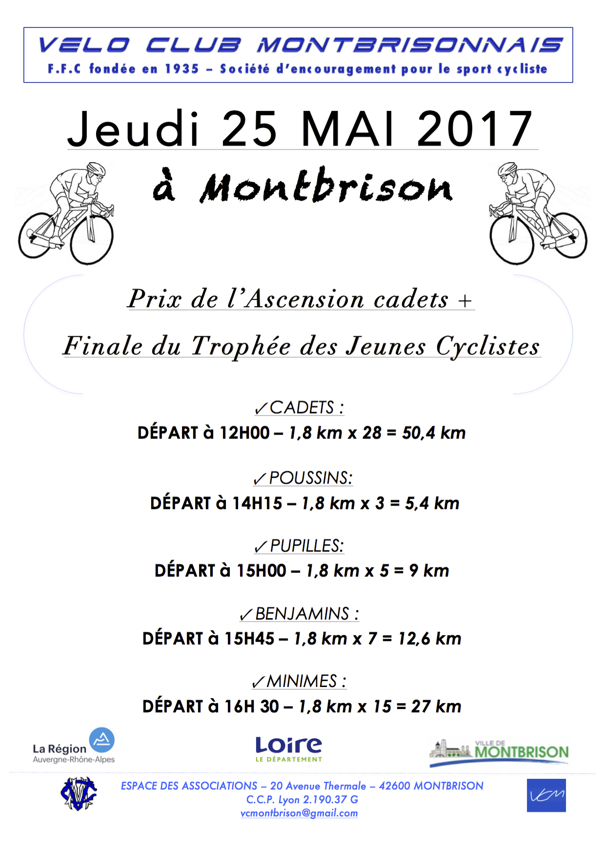 Le FTJC rassemblera une centaine de jeunes cyclistes venus de toute la Loire (de 7 à 14 ans). Chaque vainqueur et tous les participants seront récompensés par de nombreux lots. Le Grand Prix de l’Ascension aura lieu dans la même journée et verra la catégorie cadets s’élancer.