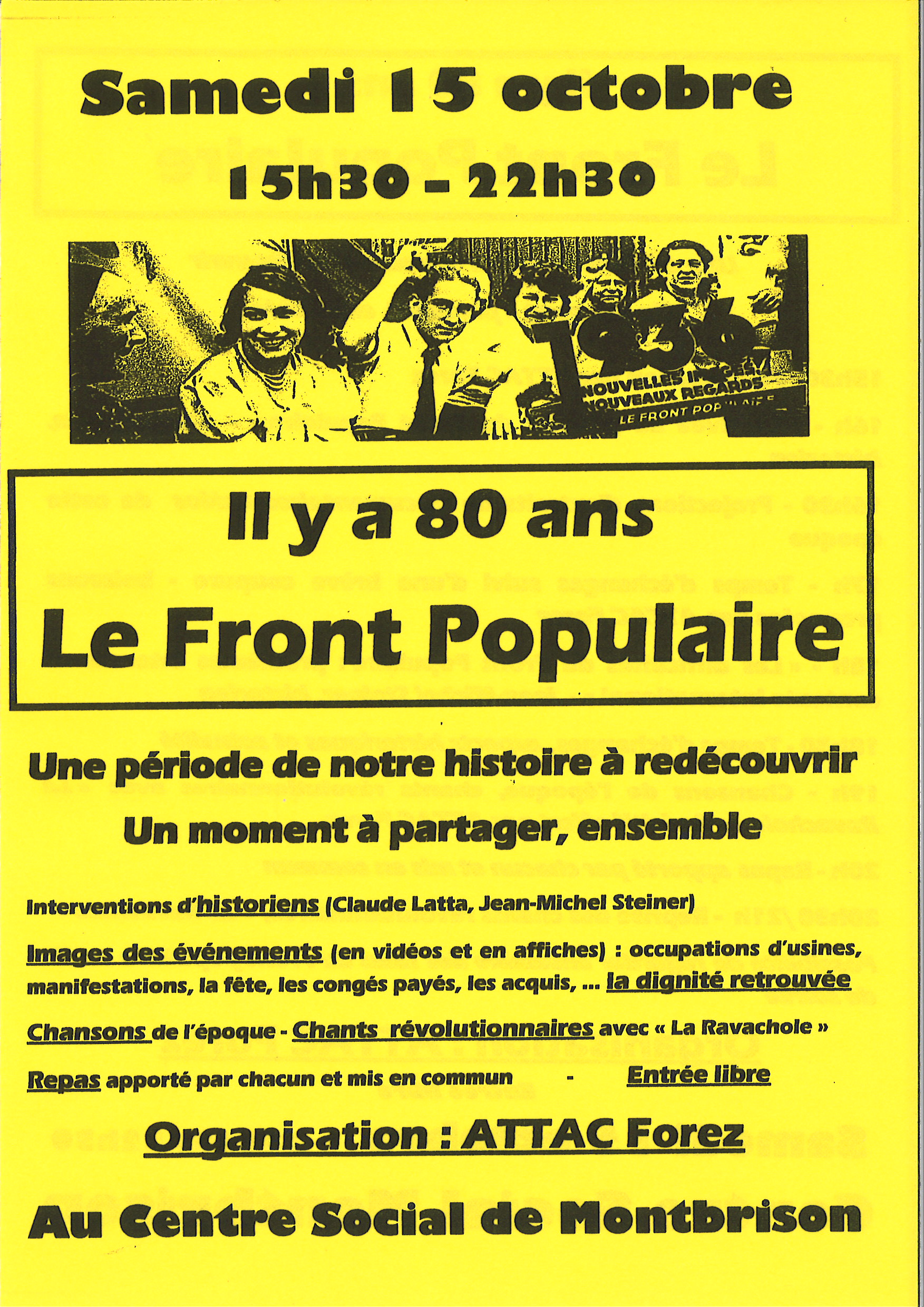 De 15h30 à 22h30, centre social organisé par ATTAC Forez, entrée libre