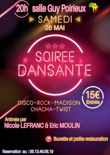 20h, espace Guy Poirieux, Organisée par l’association COULEURS D’AFRIQUE au profit d’une école au Sénégal.